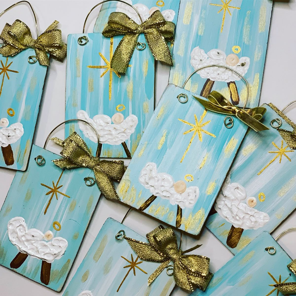 While in our care, your kiddos will receive lunch (pizzaaaaaa), and have three craft activities to come home with. They'll paint a canvas, a Christmas ornament, and Christmas shelf decor.